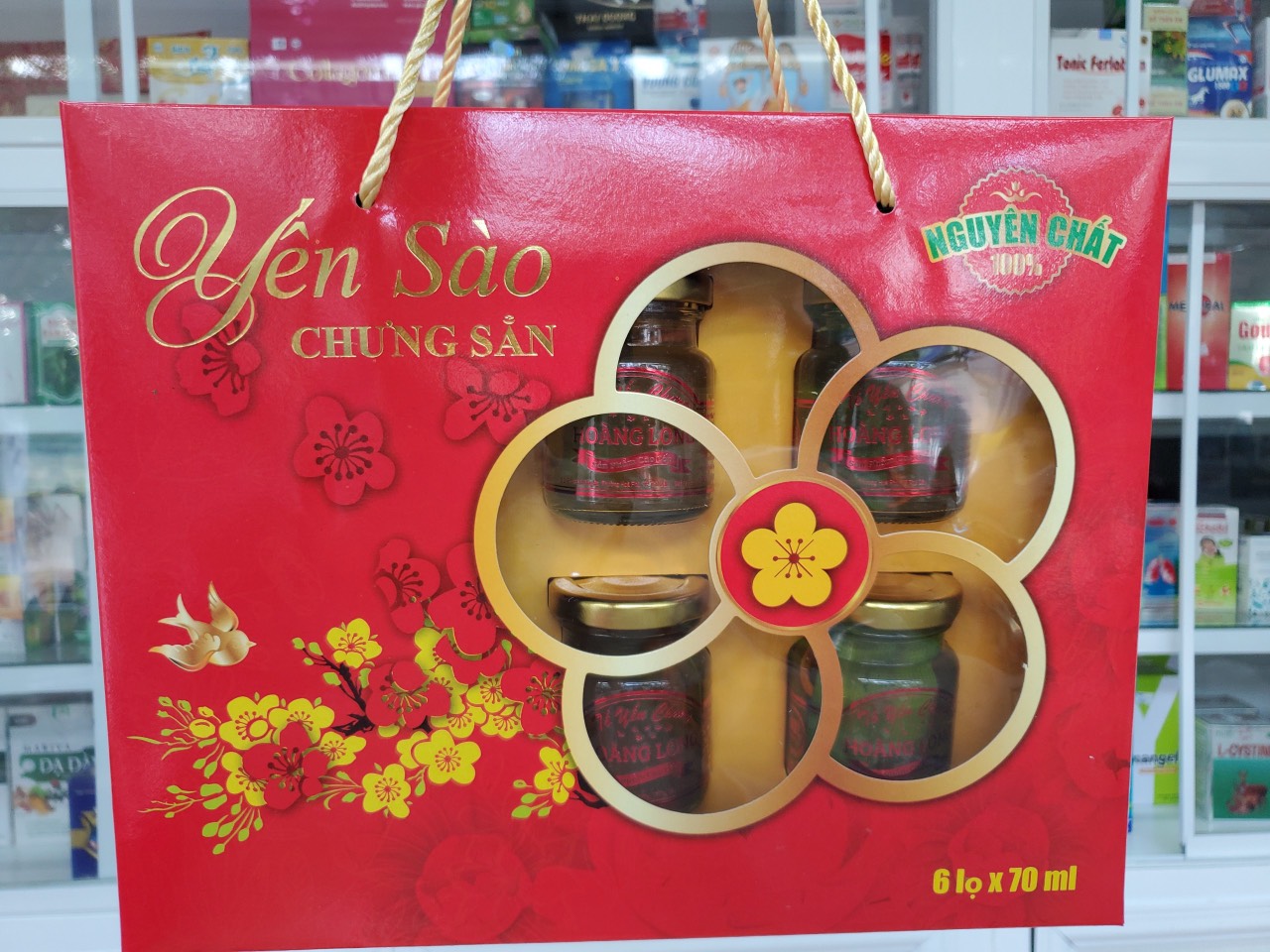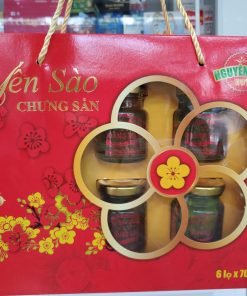 Hộp 6 hũ tổ yến chưng sẵn 70ml là sản phẩm tổ yến có đường phèn, kèm Táo đỏ/ nấm Đông trùng/… của thương hiệu Hoàng Quân Nest được sản xuất tại Việt Nam, nước yến tinh chất rất bổ dưỡng, giúp hồi phục sức khỏe, bổ sung năng lượng và bồi bổ cơ thể rất hiệu quả.